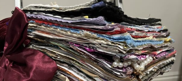 The book can close thanks to velvet headbands with bows I attached to it. I also added pearl clips and bobby pins. These hair decorations were reflective as the types of outfits the Queen wore (the lace tape is also a callback to Catherine’s outfits, but that stuff was more pricey than the dollar store classy hair accessories!)