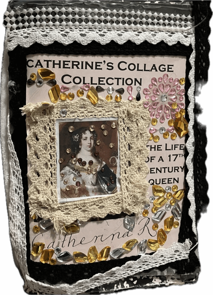 This book’s official title is called, Catherine’s Collage Collection: The Life of a 17th Century Queen.