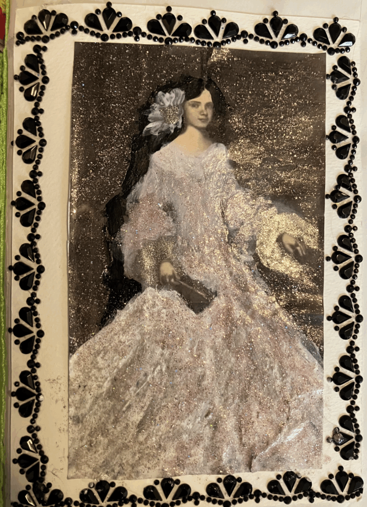 Still, I wanted to use it because it’s so pretty! My modern eyes see it as a being equivalent to a high school senior picture. Maybe it’s her before a homecoming dance or crowned Prom Queen.
